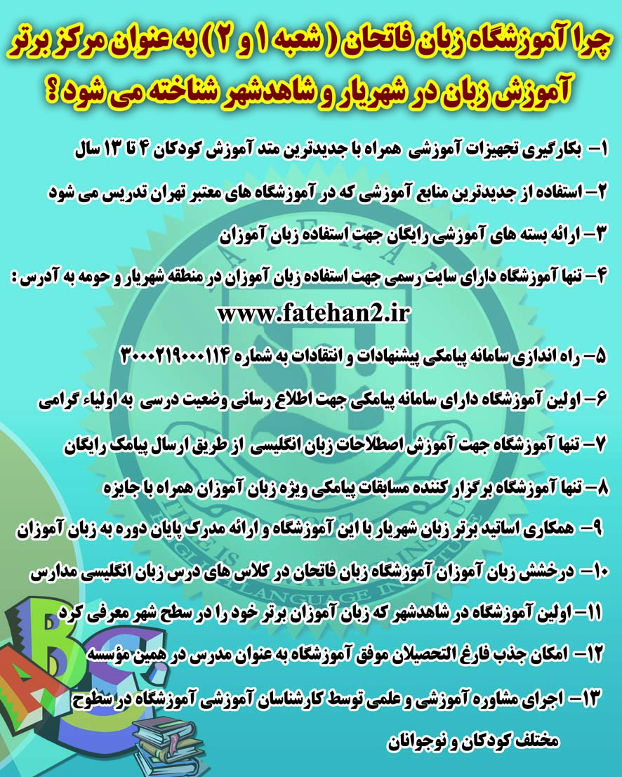 افتخار ما این است که باهوش ترین دانش آموزان شاهدشهر، آموزشگاه فاتحان را برای یادگیری زبان انگلیسی انتخاب کرده اند.